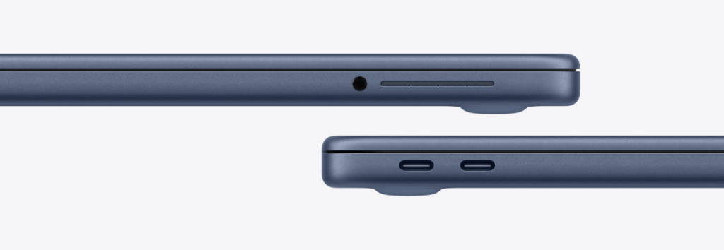 MacBook Neo оснащён двойными динамиками по бокам корпуса с поддержкой Spatial Audio и Dolby Atmos, а также разъёмом для наушников 3,5 мм и двумя портами USB‑C. Один поддерживает USB 3 (до 10 Гбит/с) и DisplayPort: Neo может подключать один внешний дисплей с разрешением до 4K при частоте 60 Гц.